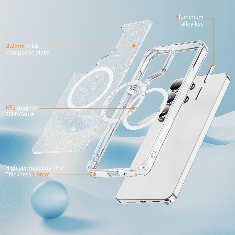 Skydda din Samsung Galaxy S26 Ultra med detta Glitter Magnetic Case. Denna kristallklara telefonfodral kombinerar stil och funktionalitet. Med ett elegant glittrande design och robust skydd är detta fodral det perfekta valet för den medvetna användaren.