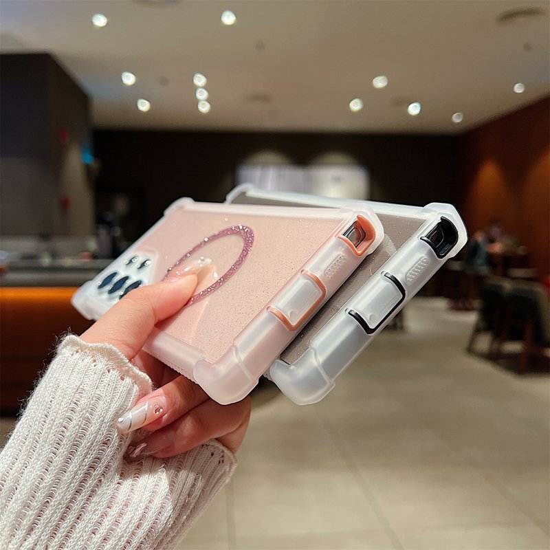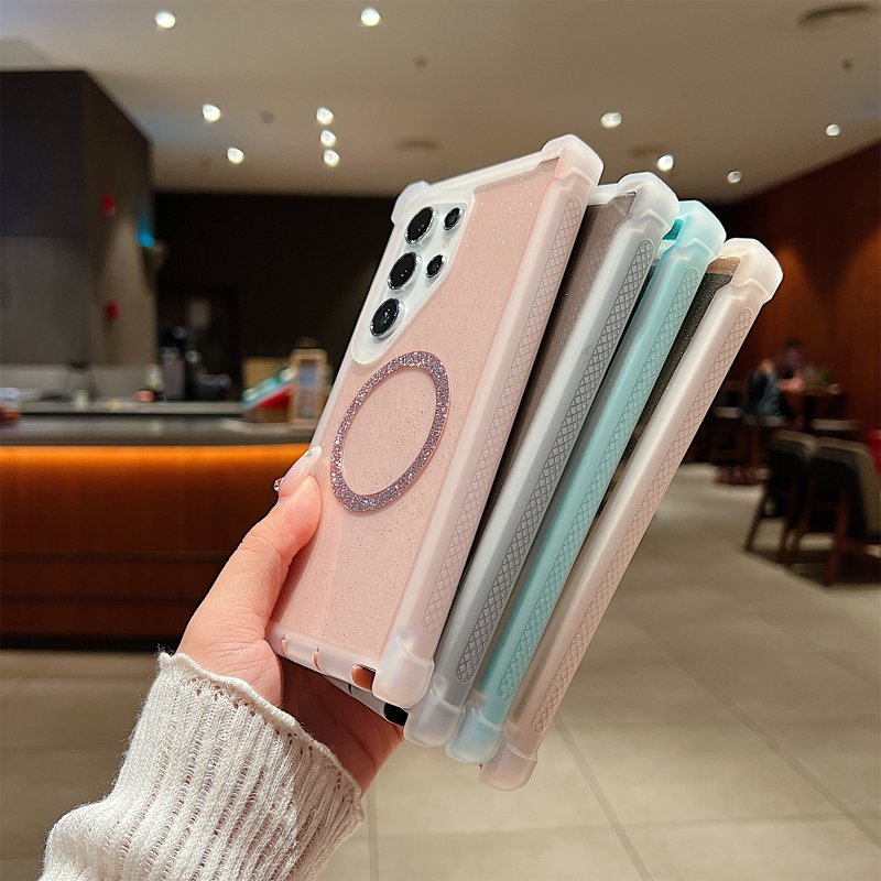 - Den transparenta designen med glittrande partiklar skapar en dynamisk färgförändring som lyfter fram din enhets utseende.