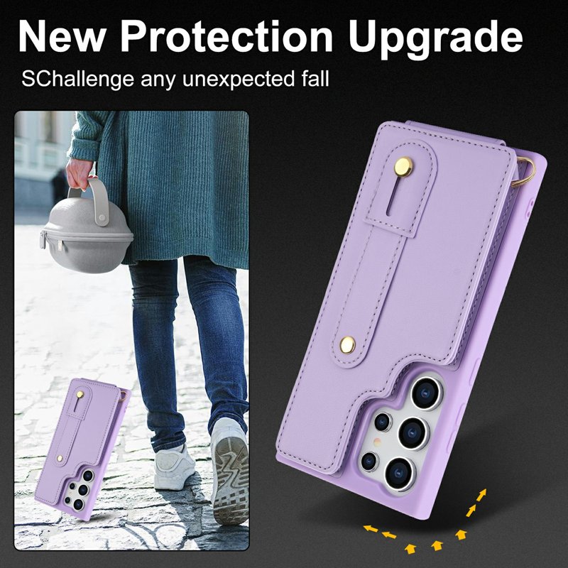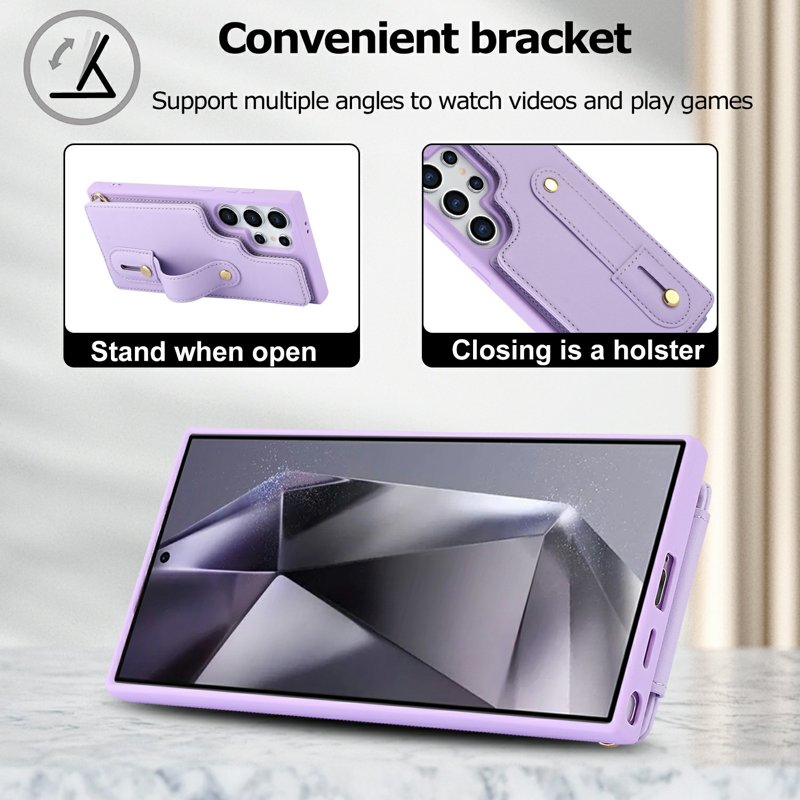Fodralets funktioner: Kortfack, Kickstand, Axelrem