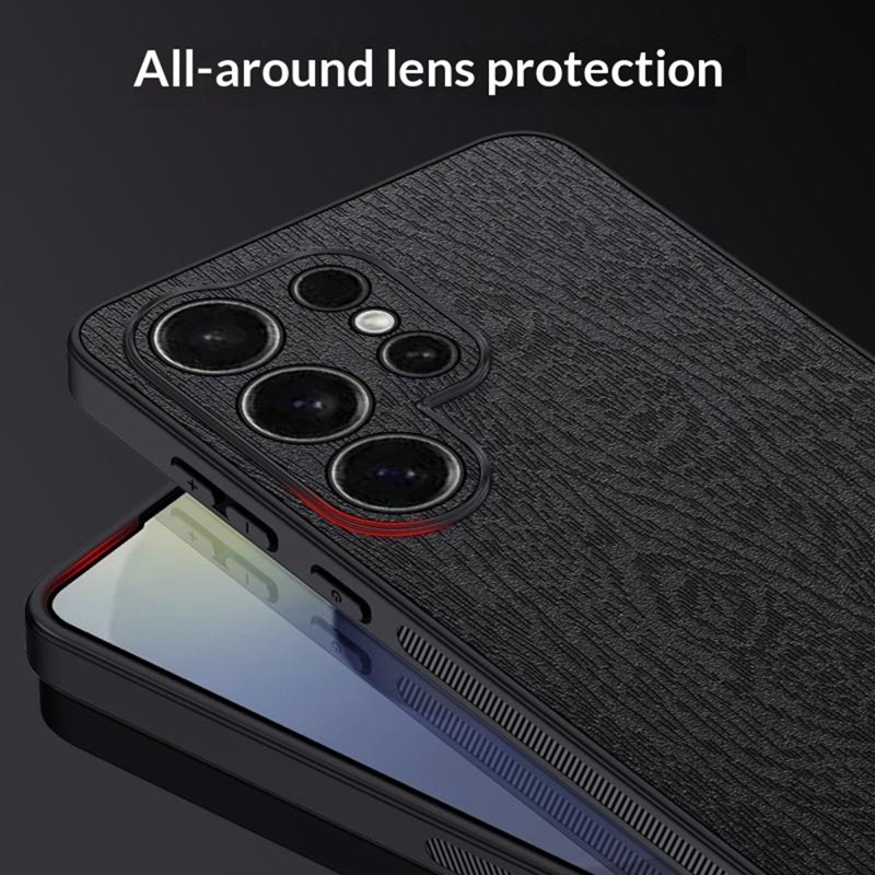Skydda din Samsung Galaxy S26 Ultra med detta eleganta och funktionella fodral. Med en trätextur av PU-läder och en kombination av PC och TPU, erbjuder detta fodral överlägsen skydd mot stötar och fall. Det är designat för att passa perfekt och behålla telefonens stiliga profil. Upplev trygghet och stil i ett och samma fodral.