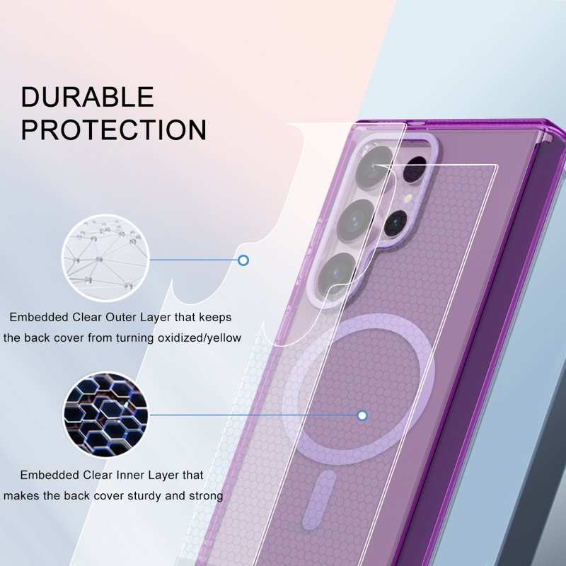 Skydda din Samsung Galaxy S26 Ultra med vårt magnetiska fodral i mörklila. Detta fodral kombinerar stil och funktionalitet. Med en transparent baksida visar det telefonens ursprungliga skönhet samtidigt som det erbjuder överlägsen skydd. Den inbyggda skärmskyddet säkerställer att din skärm förblir oskadd. Välj detta fodral för att få både skydd och elegans.
