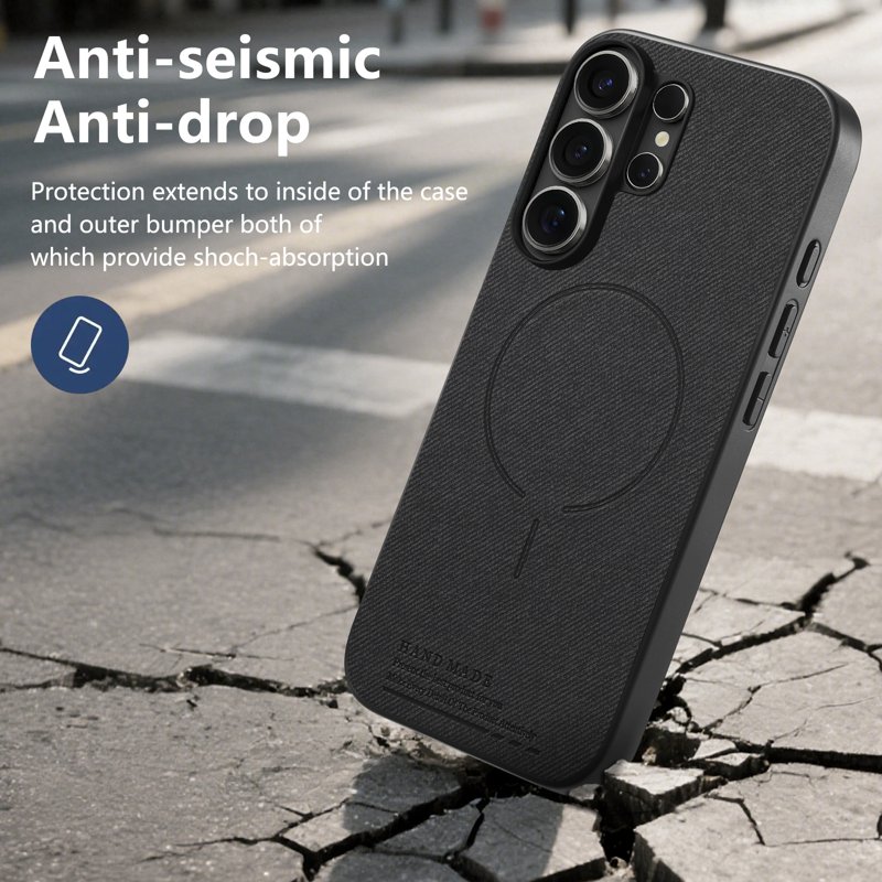 Skydda din Samsung Galaxy S26 Ultra med detta magnetiska fodral i svart. Fodralet kombinerar TPU, PU-läder och PC-material för att ge överlägsen hållbarhet och skydd. Den unika designen med tygtextur ger ett bra grepp och håller din telefon ren och fräsch. Med extra skydd för linsen och skärmen är detta fodral det perfekta valet för den medvetna användaren.