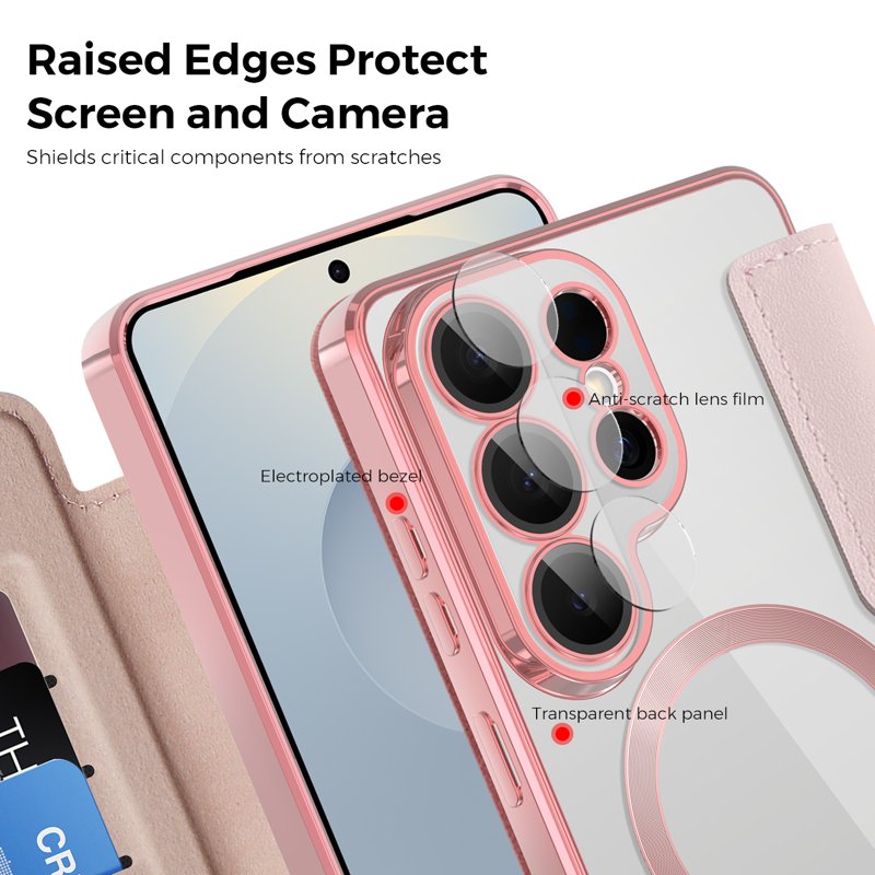 Skydda din Samsung Galaxy S26 Ultra med detta eleganta och funktionella fodral. Det är designat för att kombinera stil och säkerhet. Med RFID-blockering och praktiska kortfack är detta fodral det perfekta valet för den moderna användaren. Håll din telefon säker och snygg med detta fodral i rosa PU-läder.