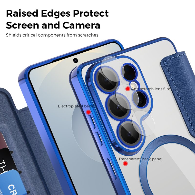 Skydda din Samsung Galaxy S26 Ultra med detta eleganta och funktionella magnetiska fodral. Med RFID-blockering och praktiska kortfack är detta fodral både säkert och stiligt. Den slitstarka konstruktionen och det transparenta bakstycket bevarar telefonens skönhet samtidigt som det ger ett bra grepp. Upplev en perfekt kombination av design och funktionalitet.