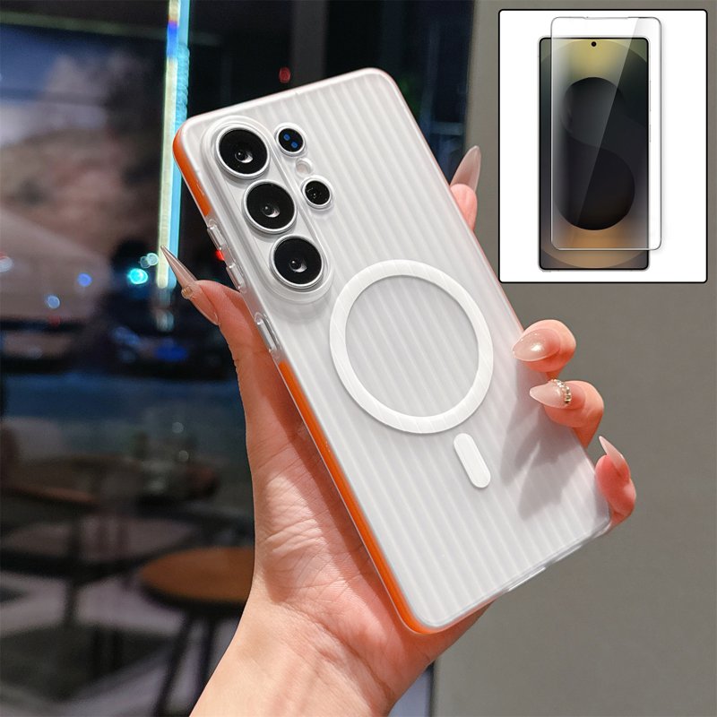 Skydda din Samsung Galaxy S26 Ultra med detta TPU Magnetic Case. Den matta ytan och det strukturerade mönstret ger både stil och funktionalitet. Med inbyggd magnet och ett skärmskydd i härdat glas får du en komplett lösning för att hålla din telefon säker och ren.