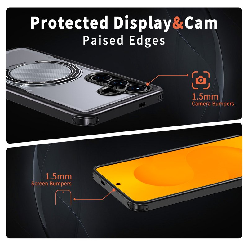 Skydda din Samsung Galaxy S26 Ultra med detta magnetiska TPU + PC-fodral. Det är designat för att ge överlägsen skydd och funktionalitet. Med en inbyggd kickstand kan du enkelt njuta av filmer och samtal utan att hålla telefonen. Fodralet är både hållbart och stilrent, vilket gör det till det perfekta valet för din smartphone.