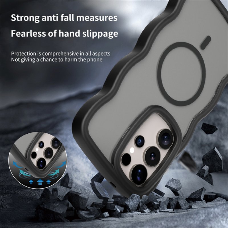 Skydda din Samsung Galaxy S26 Ultra med detta magnetiska TPU + PC-fodral. Det är både stiligt och funktionellt. Med en unik vågformad design och en smidig yta får du ett bra grepp och en lyxig känsla. Fodralet är perfekt för den som vill ha både skydd och stil i ett.