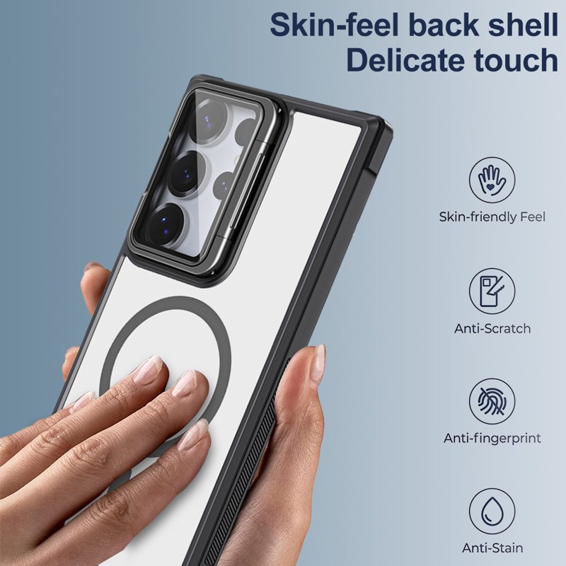 Skydda din Samsung Galaxy S26 Ultra med det magnetiska fodralet med klar baksida och linslock. Detta fodral kombinerar stil och funktionalitet. Det erbjuder överlägsen skydd och praktiska funktioner som gör din telefonanvändning enklare och mer bekväm.
