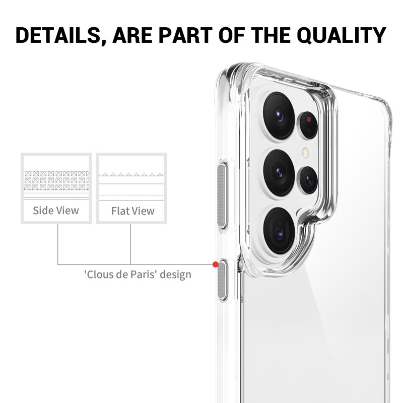 Skydda din Samsung Galaxy S26 Ultra med detta TPU + PC-fodral. Det är både hållbart och stilrent. Med en transparent design bevarar det telefonens ursprungliga utseende samtidigt som det erbjuder överlägsen skydd. Det justerbara kickstandet ger dig möjlighet att njuta av dina favoritfilmer och videor i både horisontell och vertikal position.