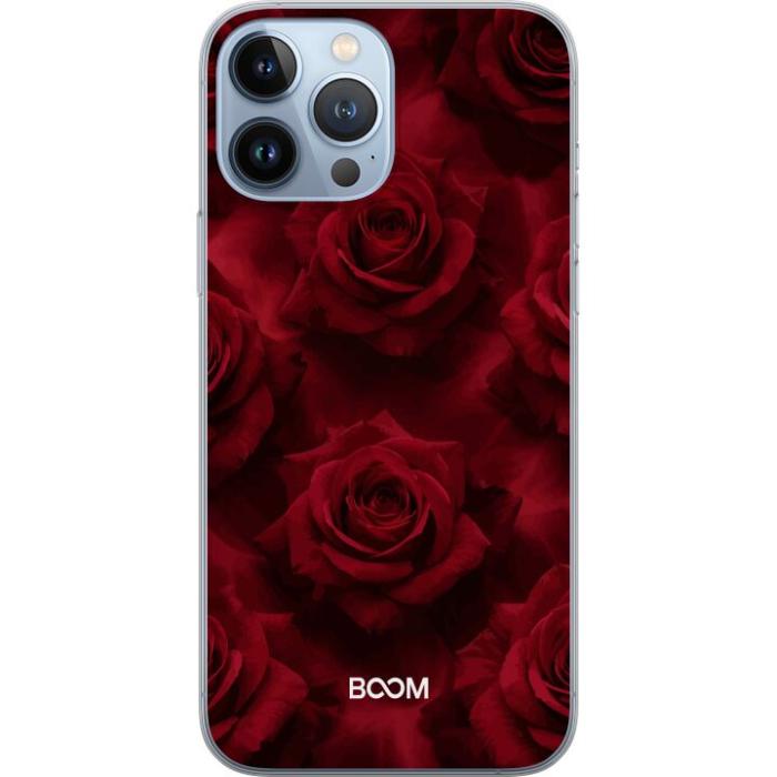 Ett genomskinligt mobilskal för iPhone 13 Pro Max med ett trendigt Crimson Rose tryck på baksidan. Skalet har en perfekt passform som skyddar din telefon mot repor, damm och smuts samtidigt som designen gör mobilen mer personlig.
