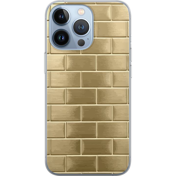 Ett genomskinligt mobilskal för iPhone 13 Pro med ett trendigt Gyllene Murstenar tryck på baksidan. Skalet har en perfekt passform som skyddar din telefon mot repor, damm och smuts samtidigt som designen gör mobilen mer personlig.