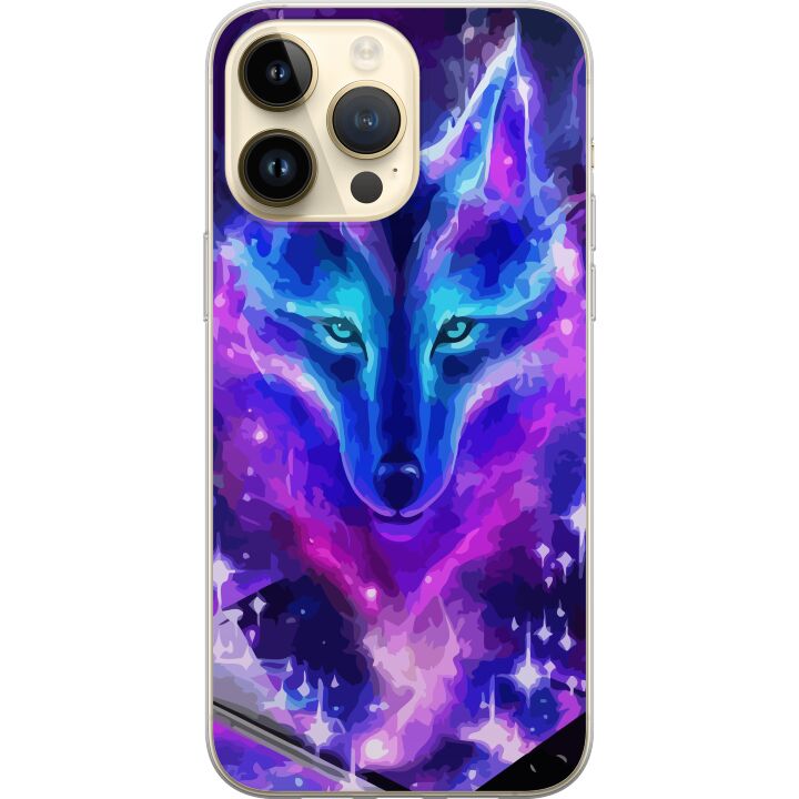 Ett genomskinligt mobilskal för iPhone 14 Pro Max med ett trendigt Neon Varg tryck på baksidan. Skalet har en perfekt passform som skyddar din telefon mot repor, damm och smuts samtidigt som designen gör mobilen mer personlig.