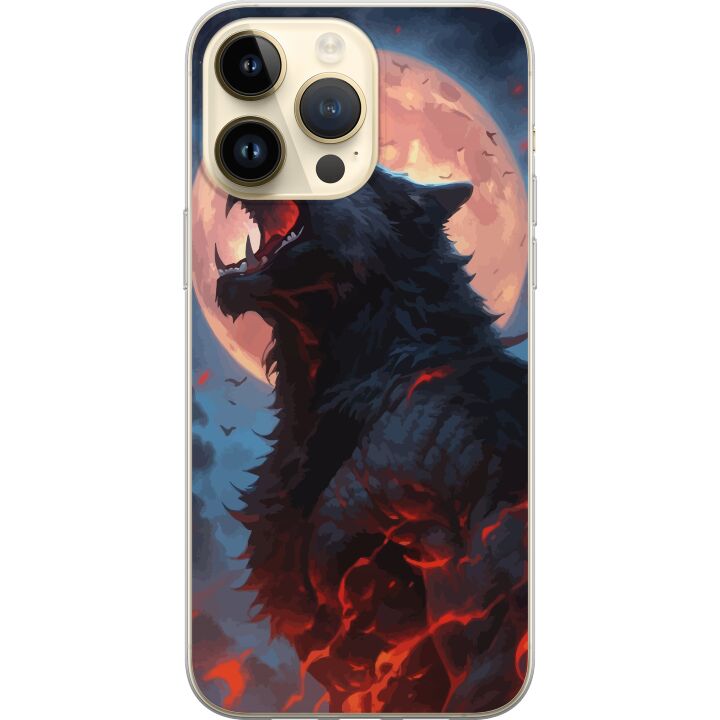 Ett genomskinligt mobilskal för iPhone 14 Pro Max med ett trendigt Ylande varg tryck på baksidan. Skalet har en perfekt passform som skyddar din telefon mot repor, damm och smuts samtidigt som designen gör mobilen mer personlig.