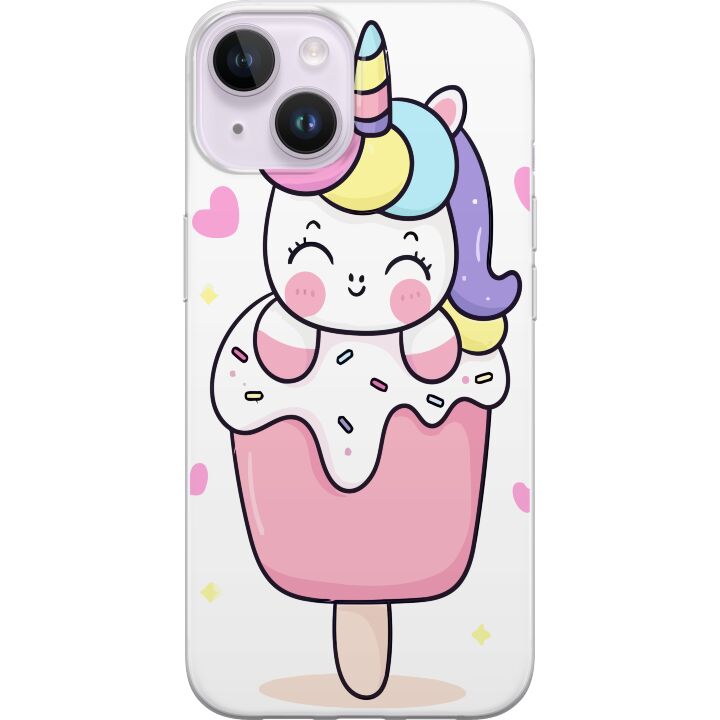 Ett genomskinligt mobilskal för iPhone 15 Plus med ett trendigt Glad enhörning tryck på baksidan. Skalet har en perfekt passform som skyddar din telefon mot repor, damm och smuts samtidigt som designen gör mobilen mer personlig.
