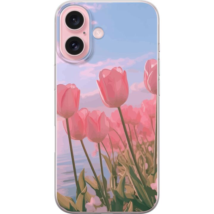 Ett genomskinligt mobilskal för iPhone 16 med ett trendigt Rosa Tulpaner tryck på baksidan. Skalet har en perfekt passform som skyddar din telefon mot repor, damm och smuts samtidigt som designen gör mobilen mer personlig.