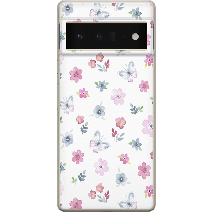 Ett genomskinligt mobilskal för Pixel 6 Pro med ett trendigt Blommor och fjärillar tryck på baksidan. Skalet har en perfekt passform som skyddar din telefon mot repor, damm och smuts samtidigt som designen gör mobilen mer personlig.