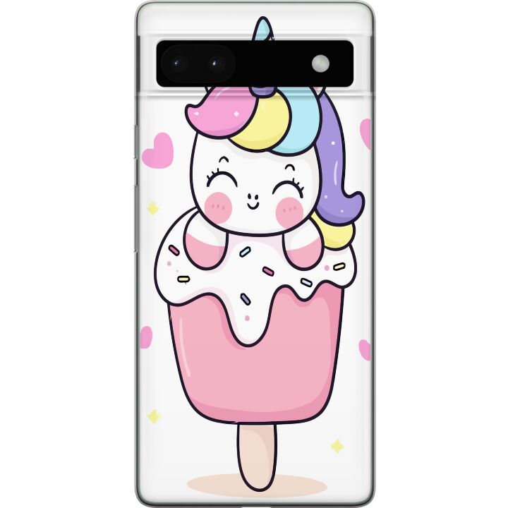 Ett genomskinligt mobilskal för Pixel 6a med ett trendigt Glad enhörning tryck på baksidan. Skalet har en perfekt passform som skyddar din telefon mot repor, damm och smuts samtidigt som designen gör mobilen mer personlig.