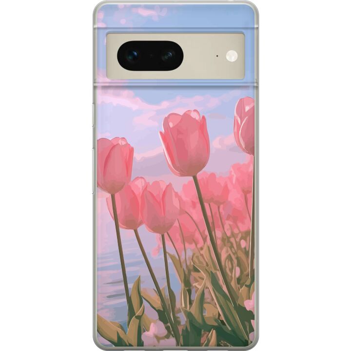 -Designat för Pixel 7 med modernt Rosa Tulpaner mönster