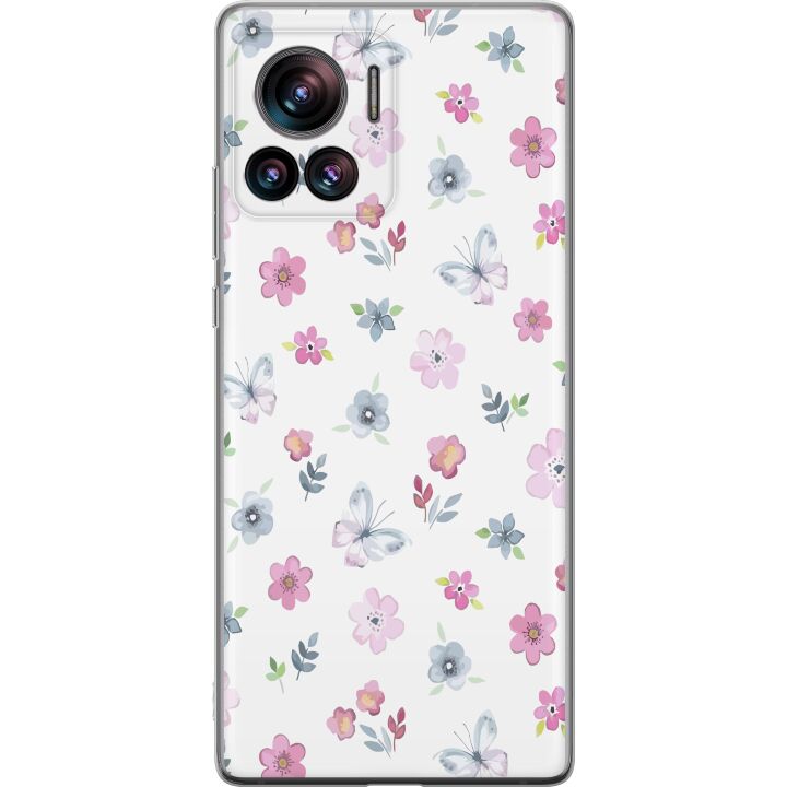 Ett genomskinligt mobilskal för Edge 30 Ultra med ett trendigt Blommor och fjärillar tryck på baksidan. Skalet har en perfekt passform som skyddar din telefon mot repor, damm och smuts samtidigt som designen gör mobilen mer personlig.