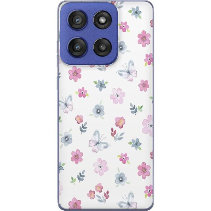 Ett genomskinligt mobilskal för Edge 60 Stylus med ett trendigt Blommor och fjärillar tryck på baksidan. Skalet har en perfekt passform som skyddar din telefon mot repor, damm och smuts samtidigt som designen gör mobilen mer personlig.