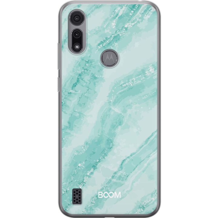Ett genomskinligt mobilskal för Moto E6i med ett trendigt Mint Marble tryck på baksidan. Skalet har en perfekt passform som skyddar din telefon mot repor, damm och smuts samtidigt som designen gör mobilen mer personlig.
