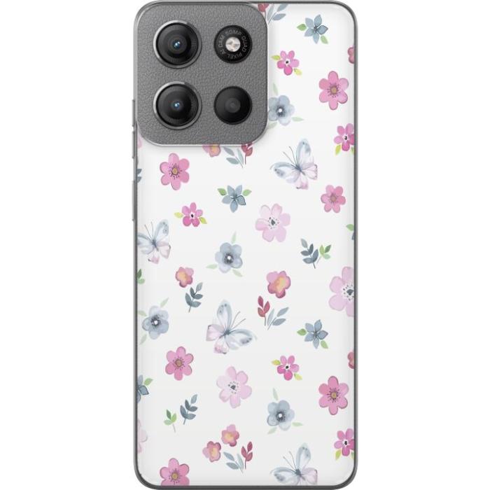 Ett genomskinligt mobilskal för Moto G15 Power med ett trendigt Blommor och fjärillar tryck på baksidan. Skalet har en perfekt passform som skyddar din telefon mot repor, damm och smuts samtidigt som designen gör mobilen mer personlig.