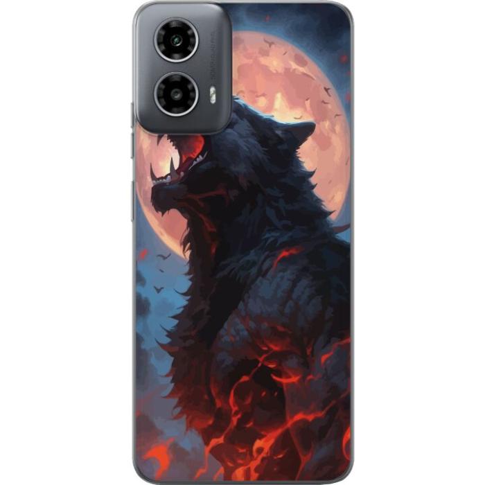 -Designat för Moto G34 med modernt Ylande varg mönster