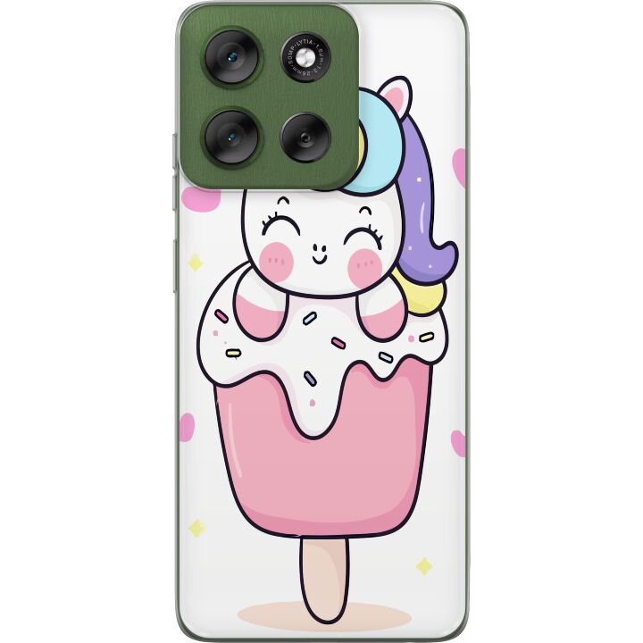 Ett genomskinligt mobilskal för Moto G56 med ett trendigt Glad enhörning tryck på baksidan. Skalet har en perfekt passform som skyddar din telefon mot repor, damm och smuts samtidigt som designen gör mobilen mer personlig.
