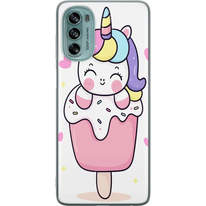 Ett genomskinligt mobilskal för Moto G62 5G med ett trendigt Glad enhörning tryck på baksidan. Skalet har en perfekt passform som skyddar din telefon mot repor, damm och smuts samtidigt som designen gör mobilen mer personlig.