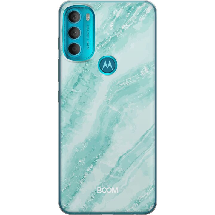 Ett genomskinligt mobilskal för Moto G71 5G med ett trendigt Mint Marble tryck på baksidan. Skalet har en perfekt passform som skyddar din telefon mot repor, damm och smuts samtidigt som designen gör mobilen mer personlig.