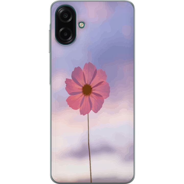 Ett genomskinligt mobilskal för Galaxy A07 4G med ett trendigt Rosa blomma tryck på baksidan. Skalet har en perfekt passform som skyddar din telefon mot repor, damm och smuts samtidigt som designen gör mobilen mer personlig.