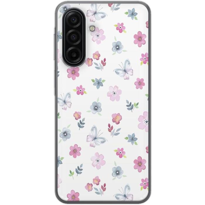 Ett genomskinligt mobilskal för Galaxy A17 5G med ett trendigt Blommor och fjärillar tryck på baksidan. Skalet har en perfekt passform som skyddar din telefon mot repor, damm och smuts samtidigt som designen gör mobilen mer personlig.