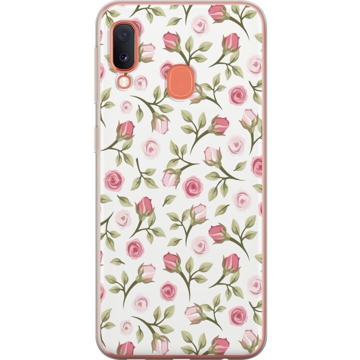 Ett genomskinligt mobilskal för Galaxy A20e med ett trendigt Blommigt tryck på baksidan. Skalet har en perfekt passform som skyddar din telefon mot repor, damm och smuts samtidigt som designen gör mobilen mer personlig.