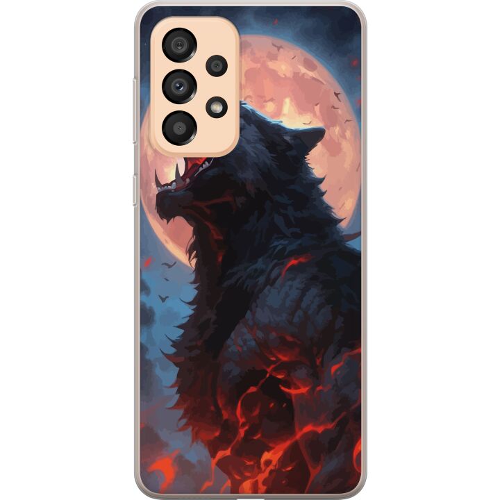 Ett genomskinligt mobilskal för Galaxy A33 5G med ett trendigt Ylande varg tryck på baksidan. Skalet har en perfekt passform som skyddar din telefon mot repor, damm och smuts samtidigt som designen gör mobilen mer personlig.