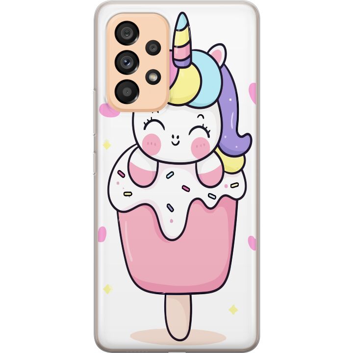 Ett genomskinligt mobilskal för Galaxy A53 5G med ett trendigt Glad enhörning tryck på baksidan. Skalet har en perfekt passform som skyddar din telefon mot repor, damm och smuts samtidigt som designen gör mobilen mer personlig.