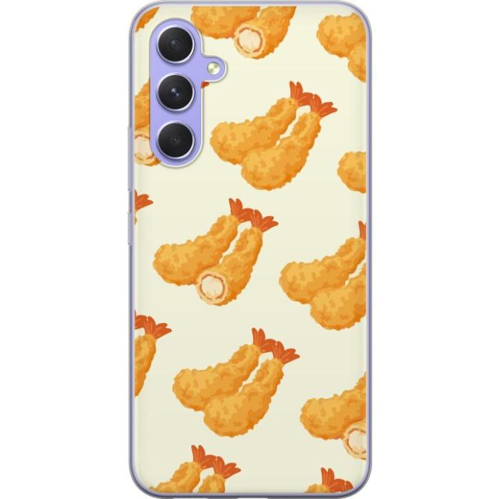 Ett genomskinligt mobilskal för Galaxy A54 med ett trendigt Räkor tryck på baksidan. Skalet har en perfekt passform som skyddar din telefon mot repor, damm och smuts samtidigt som designen gör mobilen mer personlig.
