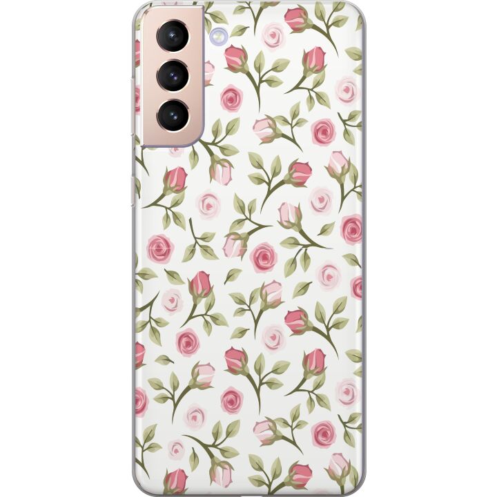 Ett genomskinligt mobilskal för Galaxy S21 med ett trendigt Blommigt tryck på baksidan. Skalet har en perfekt passform som skyddar din telefon mot repor, damm och smuts samtidigt som designen gör mobilen mer personlig.