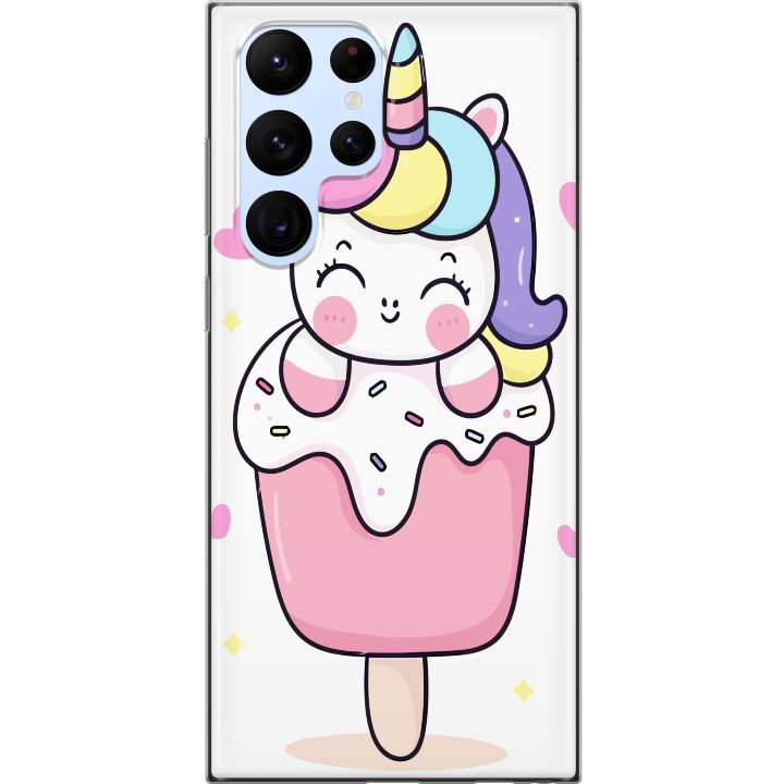 Ett genomskinligt mobilskal för Galaxy S22 Ultra 5G med ett trendigt Glad enhörning tryck på baksidan. Skalet har en perfekt passform som skyddar din telefon mot repor, damm och smuts samtidigt som designen gör mobilen mer personlig.