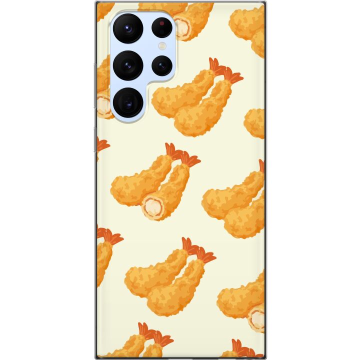 Ett genomskinligt mobilskal för Galaxy S22 Ultra 5G med ett trendigt Räkor tryck på baksidan. Skalet har en perfekt passform som skyddar din telefon mot repor, damm och smuts samtidigt som designen gör mobilen mer personlig.