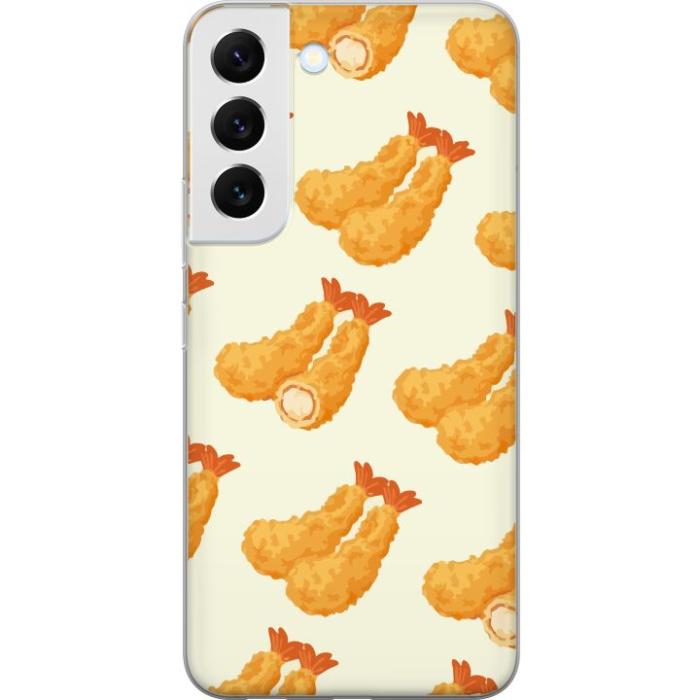 Ett genomskinligt mobilskal för Galaxy S22+ 5G med ett trendigt Räkor tryck på baksidan. Skalet har en perfekt passform som skyddar din telefon mot repor, damm och smuts samtidigt som designen gör mobilen mer personlig.