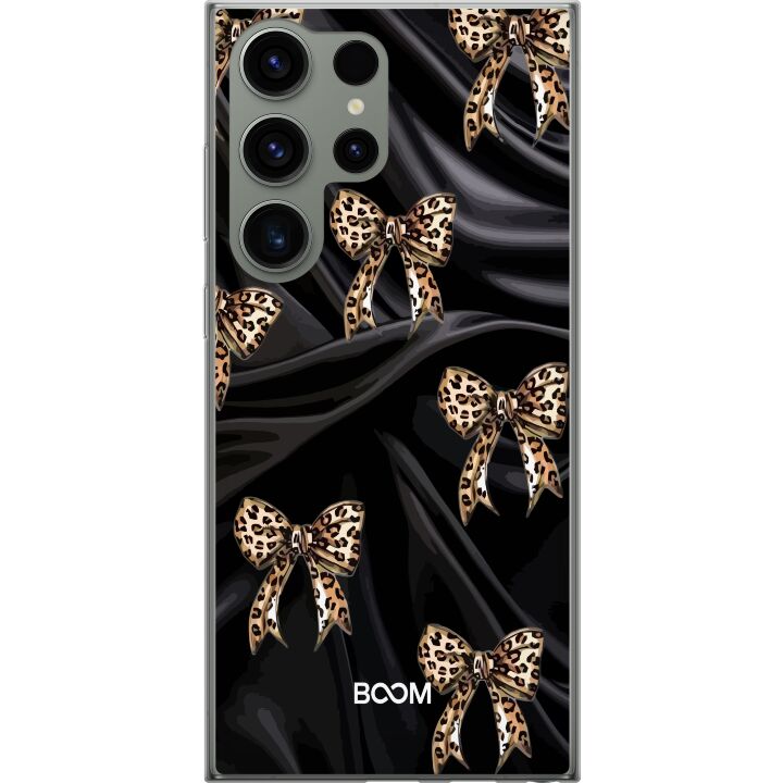 Ett genomskinligt mobilskal för Galaxy S23 Ultra med ett trendigt Leopard Bow tryck på baksidan. Skalet har en perfekt passform som skyddar din telefon mot repor, damm och smuts samtidigt som designen gör mobilen mer personlig.