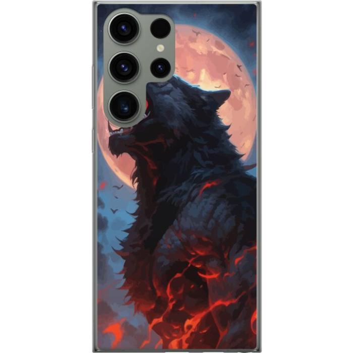 Ett genomskinligt mobilskal för Galaxy S23 Ultra med ett trendigt Ylande varg tryck på baksidan. Skalet har en perfekt passform som skyddar din telefon mot repor, damm och smuts samtidigt som designen gör mobilen mer personlig.