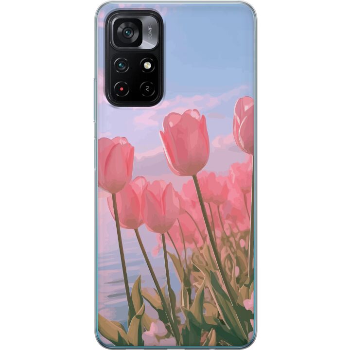 -Designat för Poco M4 Pro 5G med modernt Rosa Tulpaner mönster