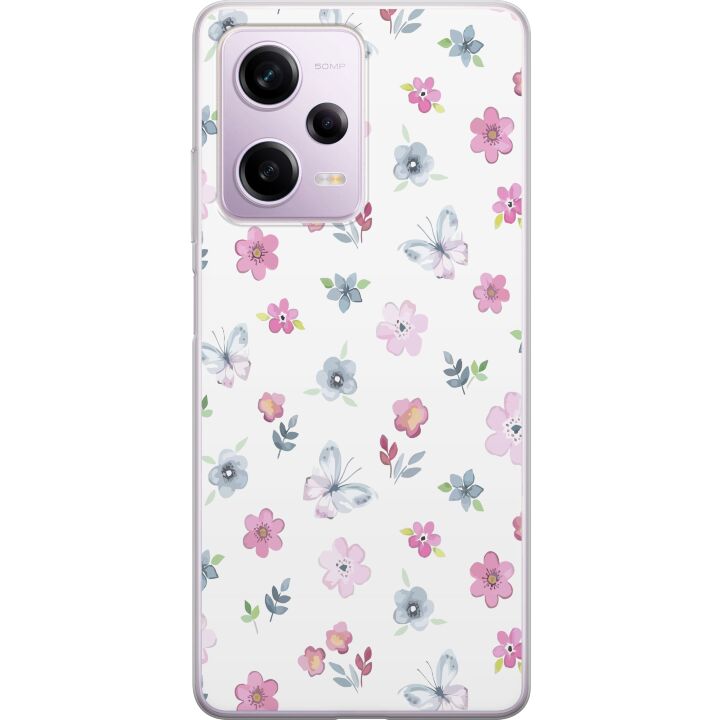 Ett genomskinligt mobilskal för Redmi Note 12 Pro med ett trendigt Blommor och fjärillar tryck på baksidan. Skalet har en perfekt passform som skyddar din telefon mot repor, damm och smuts samtidigt som designen gör mobilen mer personlig.