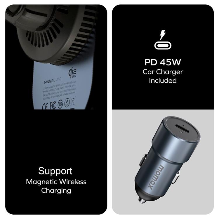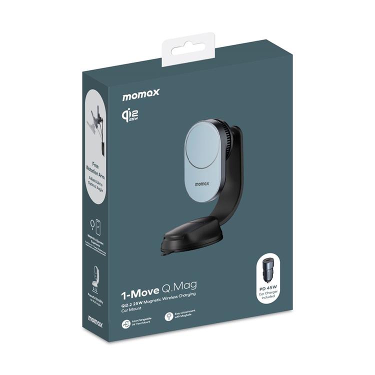 MOMAX Qi2 Bilmontering MagSafe 25W Trådlös Laddare 1-Move Q.Mag