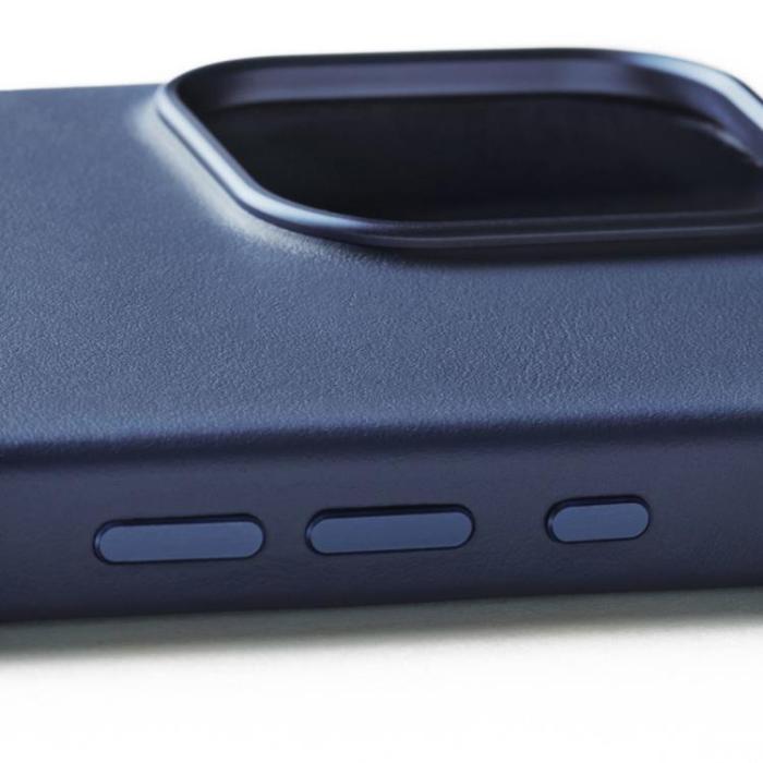 De snyggt bearbetade metallknapparna ger en smidig och exakt respons varje gång du använder dem. Knapparna har färgats för att matcha det stilfulla Blå-lädret, vilket skapar en harmonisk och exklusiv look. På iPhone 16 Pro Max-modellerna har knapparna designats i ett stycke för optimal funktionalitet.