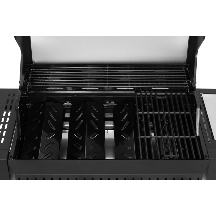 Imponerande gasolgrill med 4 rostfria brännare samt en kraftfull infraröd sidobrännare.