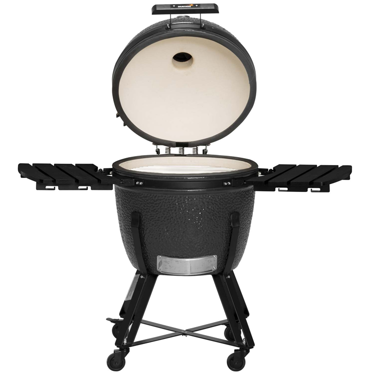 En kamado-kolgrill i keramik med en imponerande diameter på 23,5", perfekt för långvarig grillning vid låga temperaturer