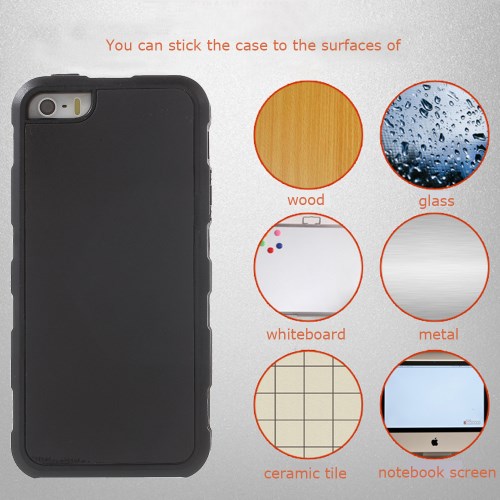 MYFONLO Magic Sticks Anti Gravity skal till Apple iPhone 5/5S/SE. Det här skalet är tillverkat i tre olika material. Dels hårdplast, TPU och ett nanopolymer adsorbtionsmaterial som gör att skalet suger fast på plana ytor så som speglar, fönter, metall, köksskåp, trä och i stort sett alla plana ytor. Så det här skalet är perfekt om du vill ta en selfie och slippa hålla i mobilen, fästa mobilen på köksskåpet och läsa av recept när du bakar, fästa den i bilrutan för GPS-användning och mycket mer! Endast fantasin sätter gränser! När skalet börjar tappa fäste tvättar du bara av den med en trasa med vatten.
