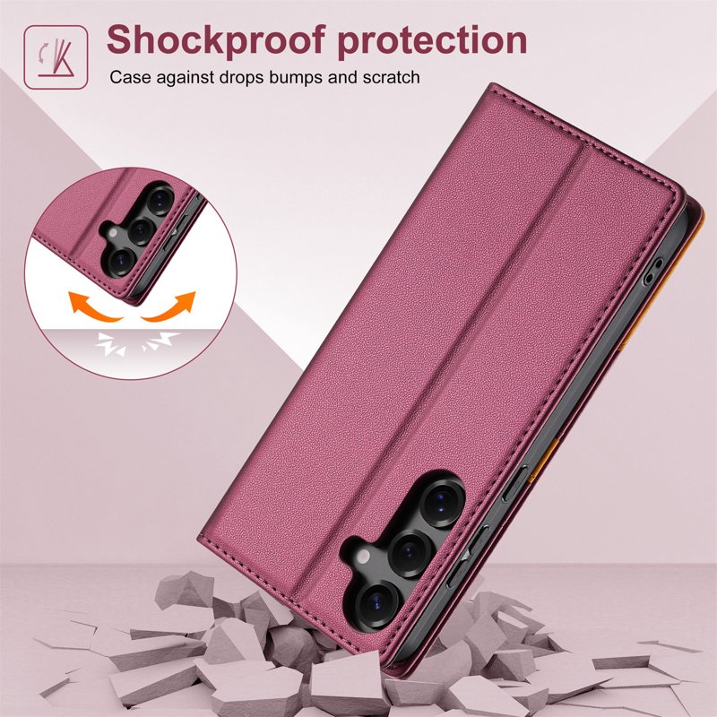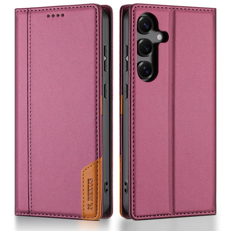 N.BEKUS Plånboksfodral för Samsung Galaxy S26 Plus RFID Konstläder Vinröd
